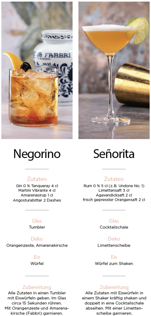 0,0 %-Spirituosen Alkoholfreier Gin, Wodka, Rum, Whisky, Wermut, z. B. von Undone (itsundone.com/de).