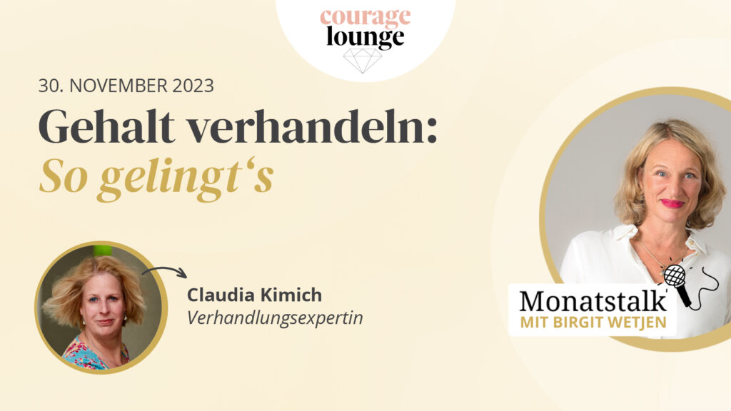 Zwischen 10 und 25 Prozent mehr Gehalt? Das klingt für viele utopisch. Für die Verhandlungsexpertin sind solche Gehaltssprünge sehr realistisch.Wie Du Dein Gehalt erfolgreich verhandelst, welche Vorbereitung erforderlich ist und welche No-Goes es bei Gehaltsverhandlungen gibt, verrät Claudia Kimich im Lounge-Talk.Hier kannst du dir die Aufzeichnung dazu ansehen. Mit dem Laden des Videos akzeptieren Sie […]